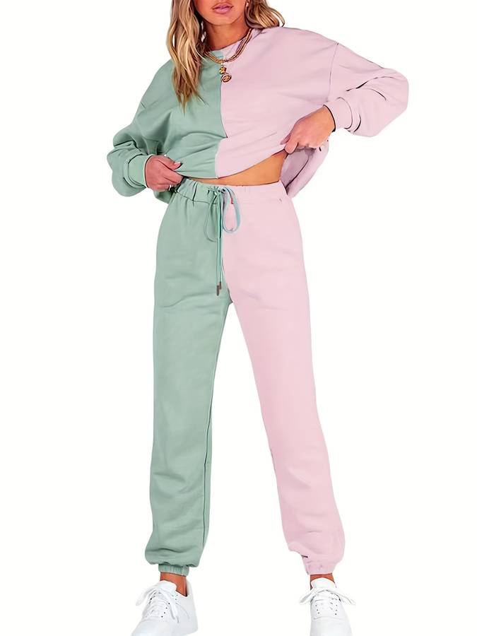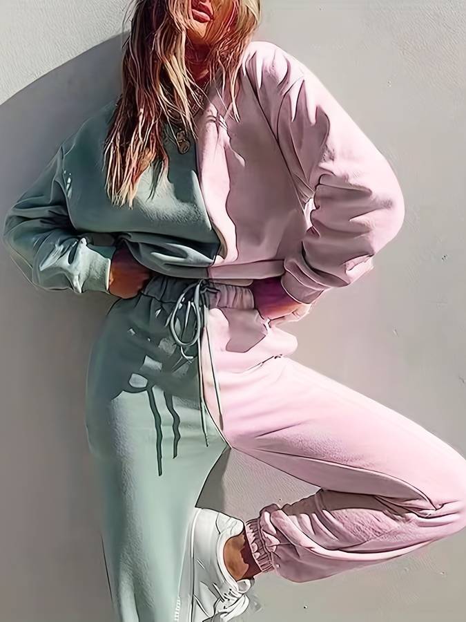 Entdecken Sie Komfort und Stil mit unserem zweifarbigen Plus-Size-Set: Colour Block Long Sleeve Top und Elastic Drawstring Joggers. Zweifarbige und warme, halbhohe Hosen mit Taschen bieten zeitlose Eleganz. Perfekt für den Winter: Fühlen Sie die Wärme und umarmen Sie Ihre Figur mit Stil. Kombinieren Sie es mit Ankle Boots für einen schicken Look oder mit Turnschuhen für einen lässigen Look.